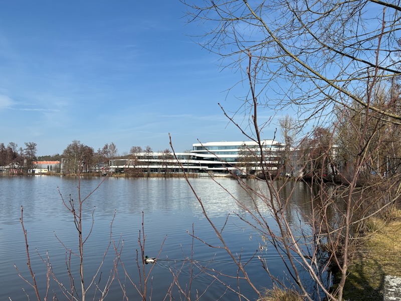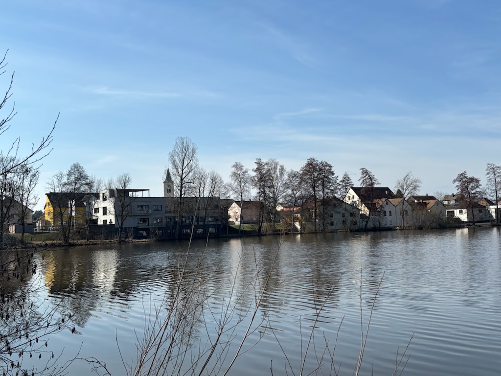 Ort der schönen Gegensätze: das beschaulich-moderne Weiherhammer an der Stadtgrenze Weidens, die „Denkwelt“ links im Bild.