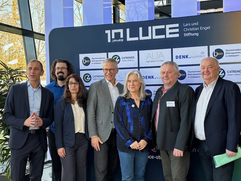 Dr. David Rester (LUCE-Stiftung und Akademie Ostbayern-Böhmen), Referent Julian Wendland, Moderatorin Birgit Renner, die Referenten Dr. Klaus Schulenburg und Kornelia Schmid, Impulsgeber Gerhard Müller und Akademie-Vorstand Josef Schönhammer (von links) stellten sich nach dem Symposium den Kameras (alle Fotos: Wolfgang Otto).