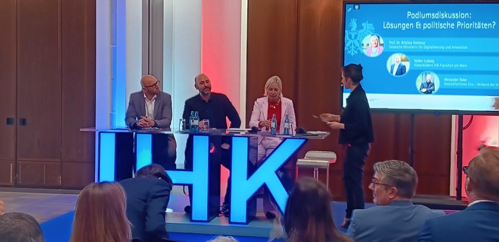 Auf einer Diskussionsveranstaltung der IHK Frankfurt zum Thema „Wie geht es weiter mit der europäischen Digitalhauptstadt“ mit Vertretern aus Politik und Netzwirtschaft, forderte daher deren Vizepräsident Volker Ludwig, im ersten Leben Geschäftsführer Central Europe des Großrechenzentrenbetreibers Digital Reality, mehr Offenheit für jene Unternehmen, die sich mit digitalen Geschäftsmodellen befassen: „Wir wünschen uns von den politischen Entscheidern mehr Offenheit und Verständnis für die Belange der Digitalwirtschaft. Die ganze Region profitiert wirtschaftlich davon, dass wir die ‚europäische Digitalhauptstadt‘ sind. Damit das Wachstum der Digitalwirtschaft die Region weiter stärken kann, ist der flächendeckende Ausbau der Kommunikationsinfrastruktur erforderlich. Dazu gehört die dezentrale Ansiedlung von Rechenzentren, um Synergien zwischen Abwärme, Quartiersentwicklung und kommunaler Wärmeplanung realisieren zu können. Rechenzentrumskapazitäten sind unverzichtbar für nahezu alle Wirtschaftsbereiche, etwa für die Finanzwirtschaft oder für Start-ups, die sich mit Anwendungschancen der Künstlichen Intelligenz beschäftigen. Darüber hinaus passt es nicht, dass beruflich wie privat immer mehr digitale Dienste genutzt werden, der Ausbau der dazu notwendigen Infrastruktur aber nicht in ausreichendem Maße voran geht.“